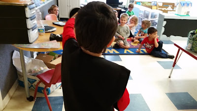 Then, when I arrived at school, I found that it wasn't a bad idea after all. Shane stood up in front of the whole class to show them his creature power discs.