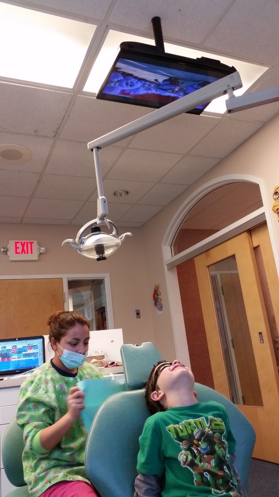 Off to the dentist we went. Shane was excited for the ceiling TVs.