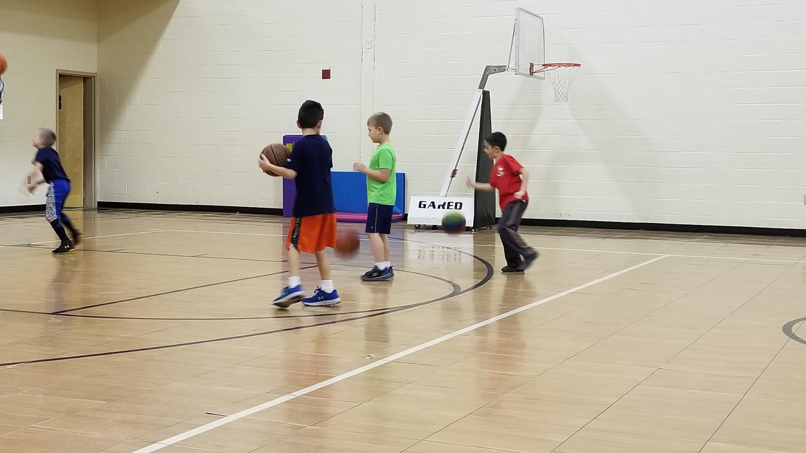 Carrie's in charge of basketball this year again. It starts at 5 PM, so I don't have time to leave wrestling and pick him up and get him there in time. Instead, I show up after wrestling and see what's going on.