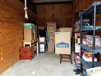 We made good progress, but there was still a lot to be done. Carrie packed and boxed, Shane stayed out of her way, and I moved stuff and consolidated the storage unit.