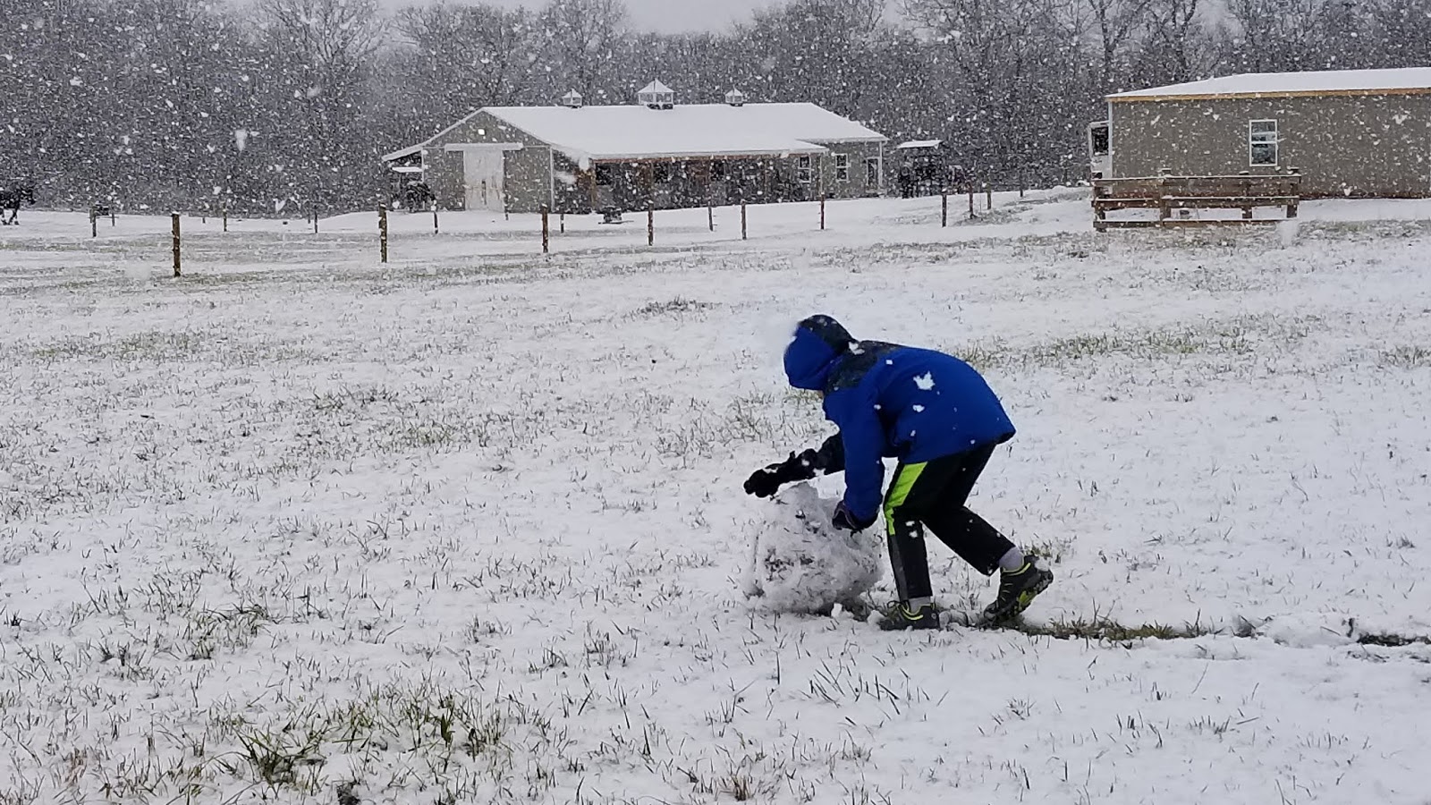 His maze picked up some accessories at one corner. I guess that's a potential hazard when making a snowman in a horse pasture!