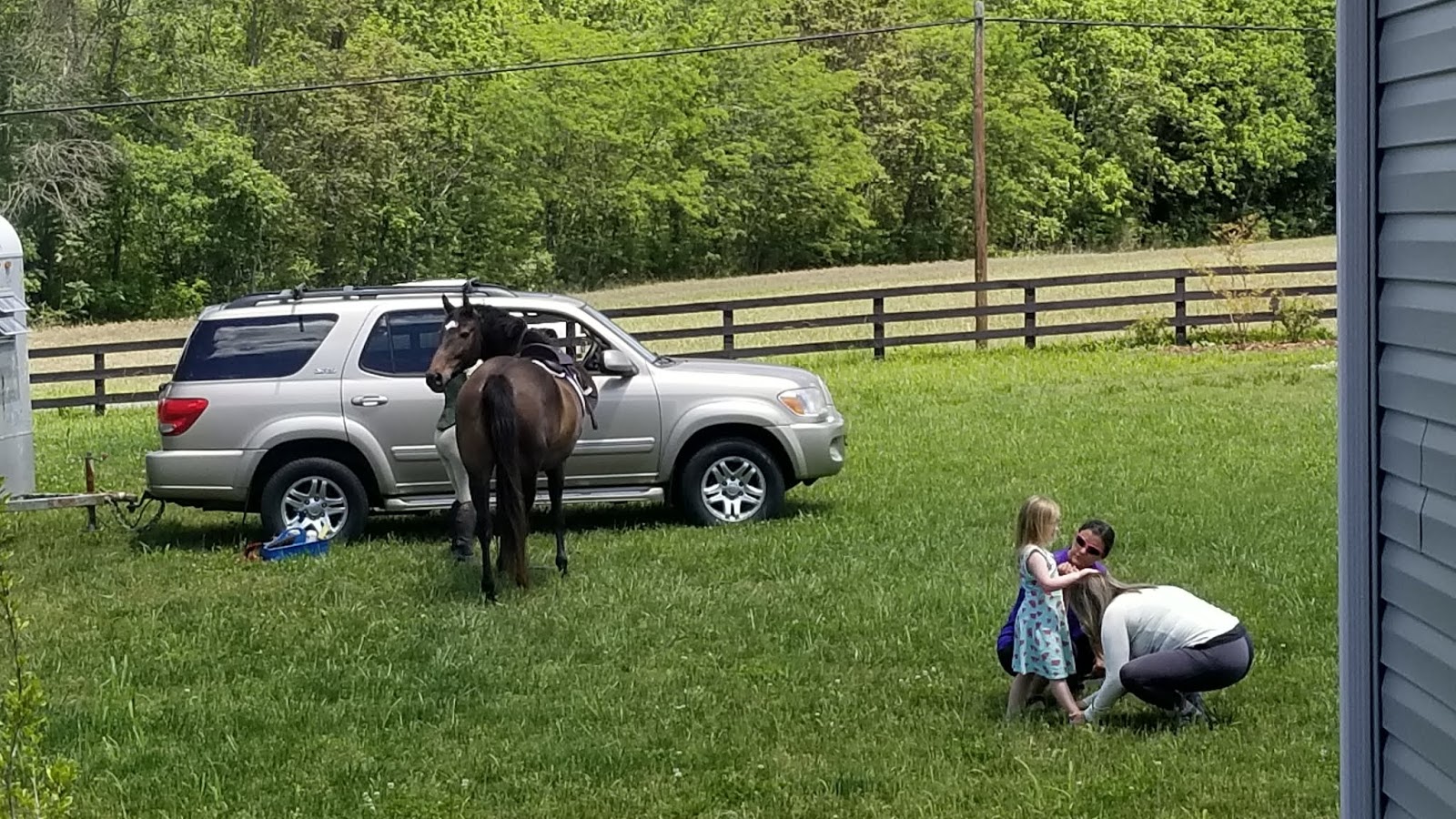 I found this picture funny: It took one person to handle the horse and two people to handle the child!
