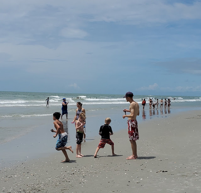 I was more surprised when the lifeguard came over and talked to me in the waves. Shane kept pushing out far and she said she saw I was on it, but to try to keep the kids from going beyond chest deep.