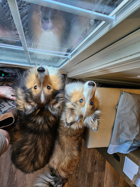 They zoomed out barking a greeting to the Sunday AM barn crew! Carrie followed soon thereafter.
